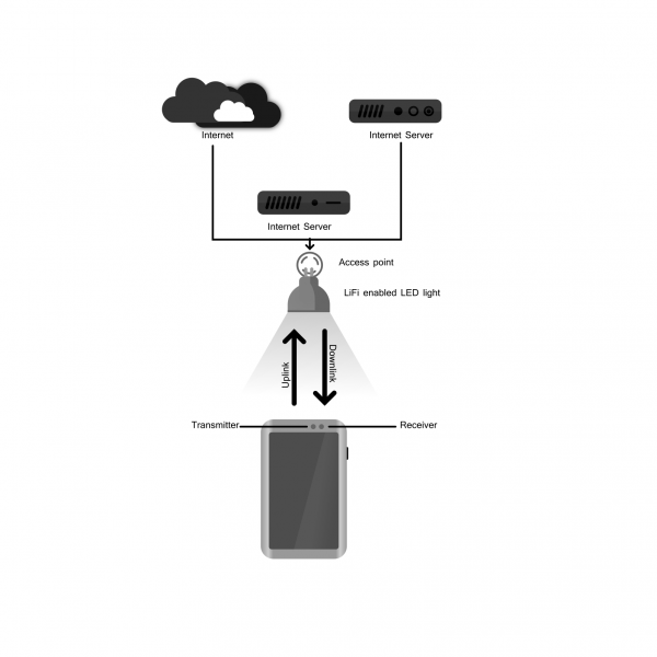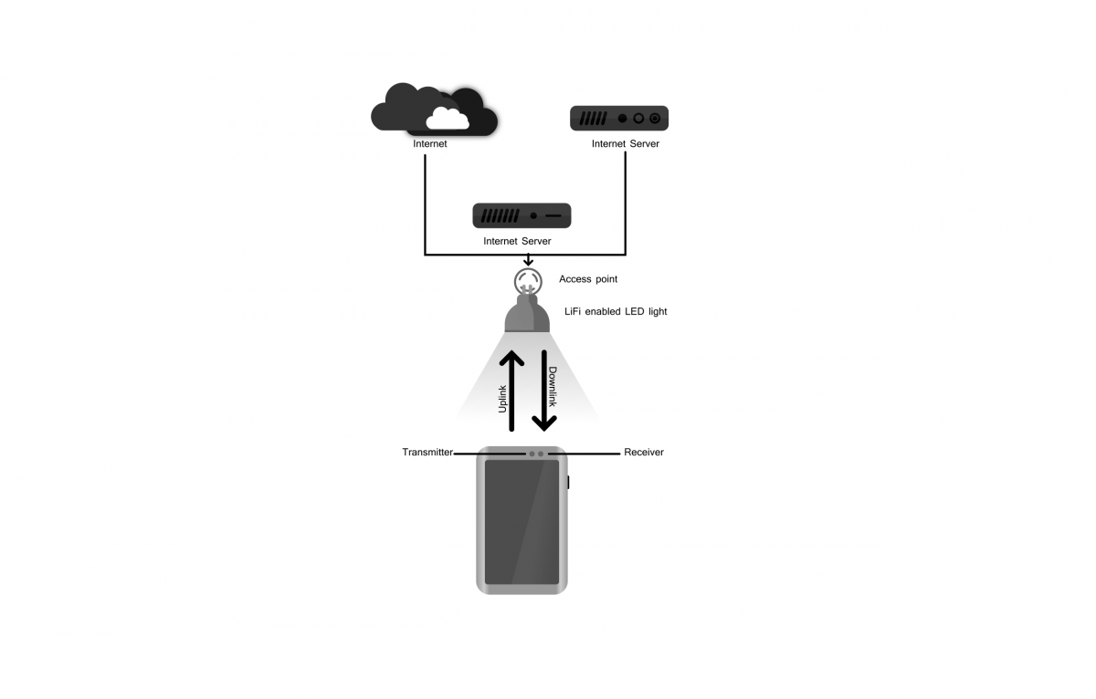 LiFi is a wireless optical technology, which uses light to transmit data and position between devices. LiFi diagram to help how it works.