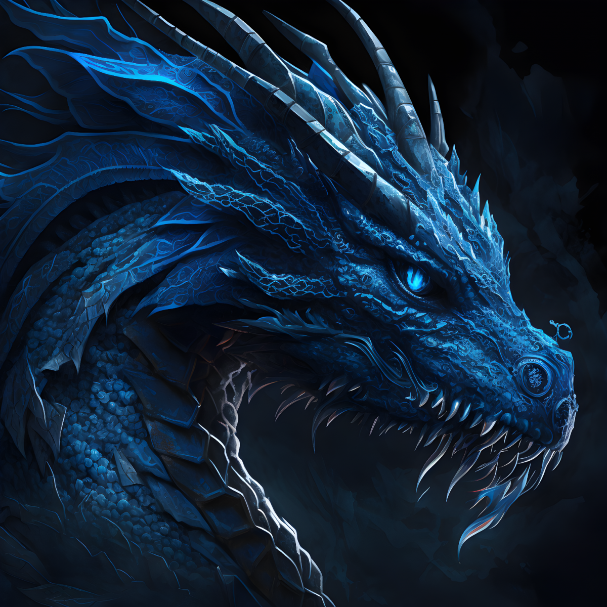 Blue dragon with blue eyes. Chinese dragon cinematic close shot.
