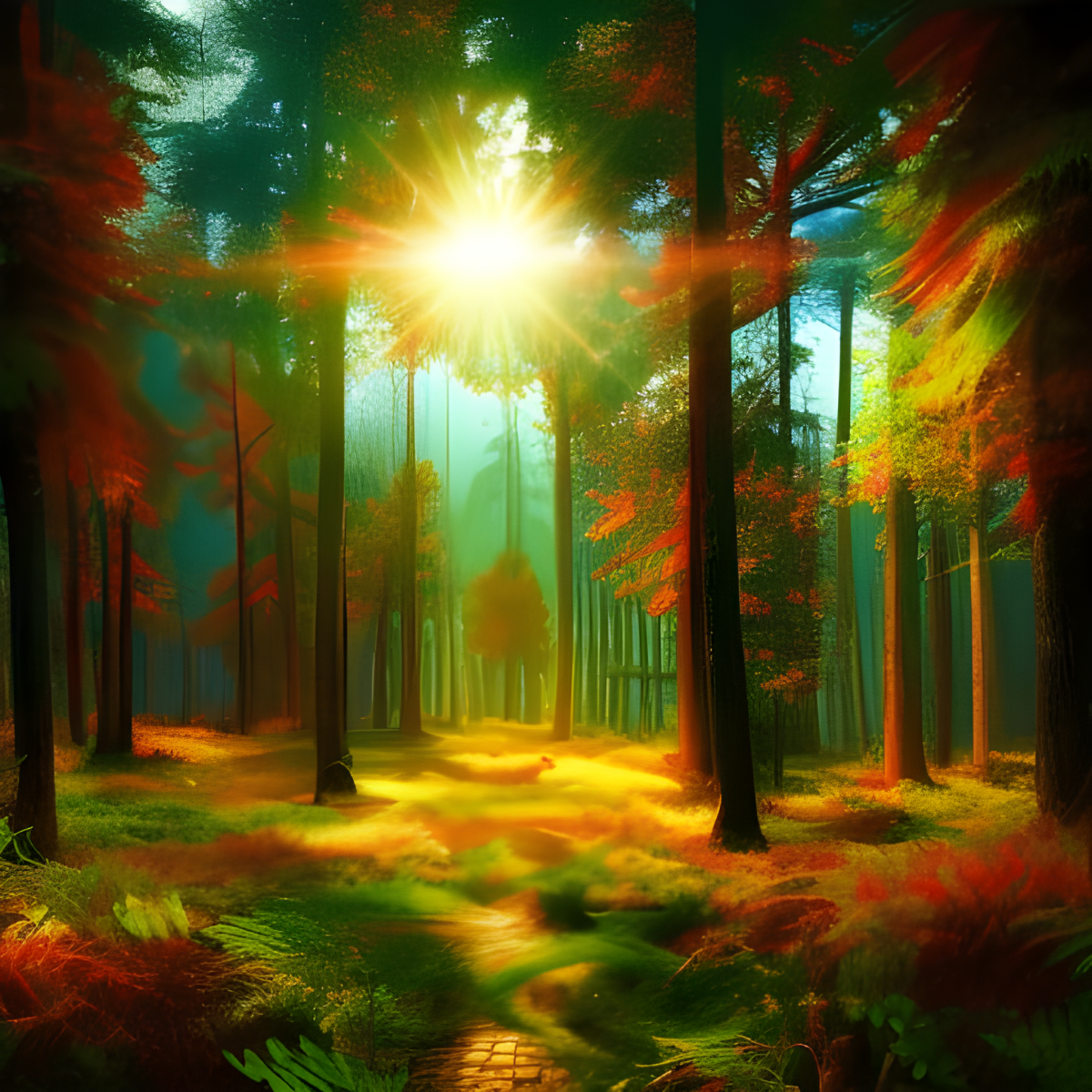 Pine trees red green