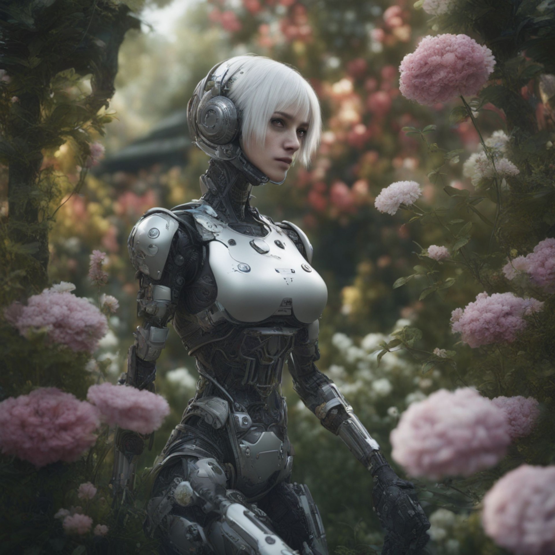 AI robots in floral background