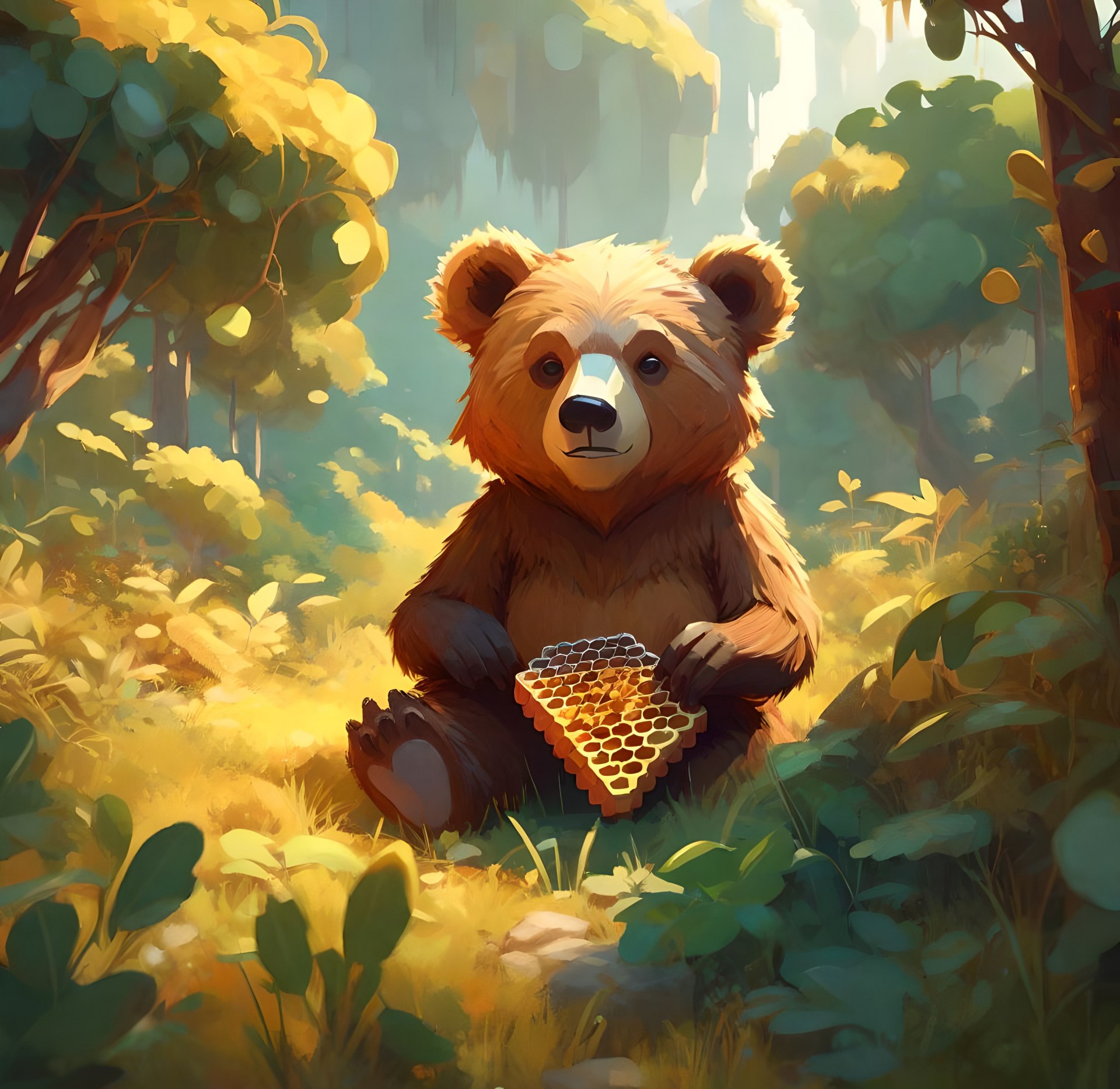 Cute baby bear with honeycomb