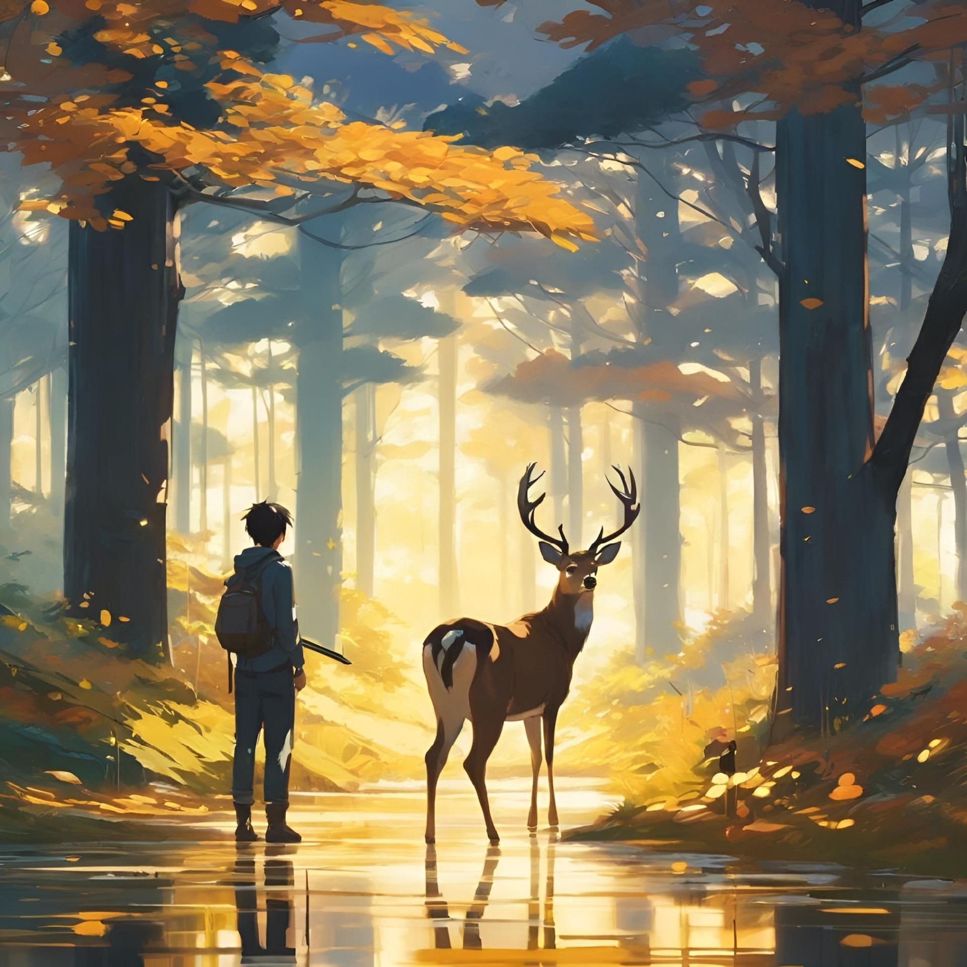 A boy and deer in the jungle