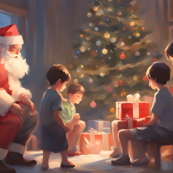 Santa giving presents to kids