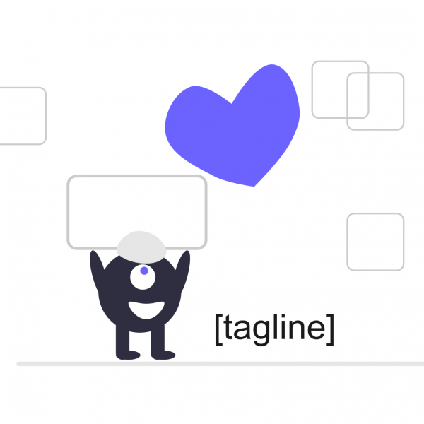 The illustration of a cute tiny character shows a sweet and short tagline of the brand.