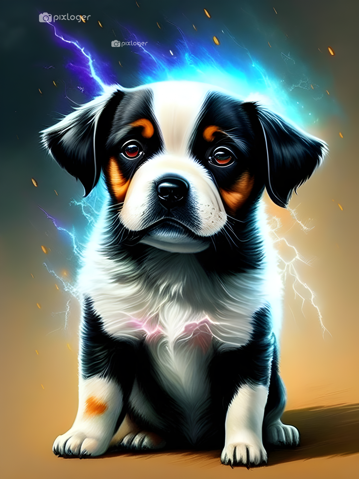 Cute dog dramatic lightening